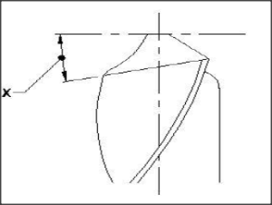What is the name of the angle in the drill bit marked as x?
